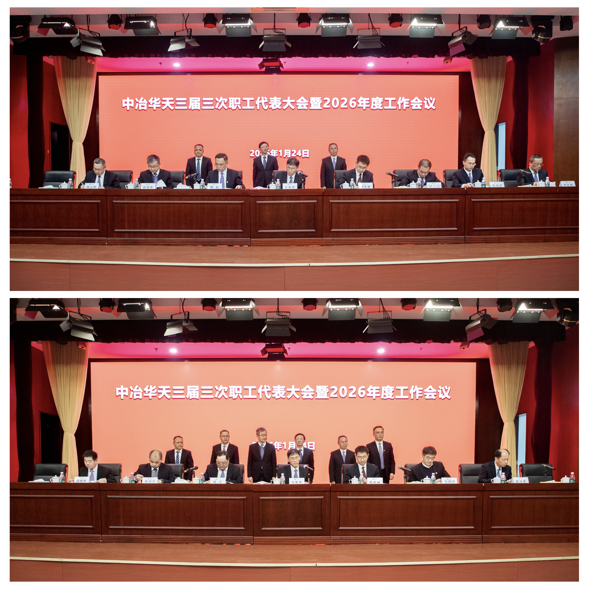 1月23日至24日,中冶華天召開(kāi)2026年度工作會(huì)議暨三屆三次職工代表大會(huì),深入學(xué)習(xí)貫徹黨的二十屆歷次全會(huì)精神,全面落實(shí)習(xí)近平總書(shū)記對(duì)中央企業(yè)工作作出的重要指示精神,認(rèn)真落實(shí)中央經(jīng)濟(jì)工作會(huì)議精神和集團(tuán)公司、中國(guó)中冶年度工作會(huì)議部署,回顧公司“十四五”及2025年奮斗歷程,分析研判形勢(shì),部署“十五五”及2026年重點(diǎn)任務(wù),號(hào)召全體干部職工以背水一戰(zhàn)的決心、破釜沉舟的勇氣、抓鐵有痕的勁頭,承壓突圍、奮勇?tīng)?zhēng)先,為公司“十五五”高質(zhì)量發(fā)展而團(tuán)結(jié)奮斗。公司黨委書(shū)記、董事長(zhǎng)方榮華講話(huà),黨委副書(shū)記、總經(jīng)理薛慶斌傳達(dá)學(xué)習(xí)集團(tuán)公司、中國(guó)中冶2026年度工作會(huì)議精神并作年度工作報(bào)告,總會(huì)計(jì)師張光明作財(cái)務(wù)工作報(bào)告,會(huì)議由黨委副書(shū)記夏興進(jìn)主持。